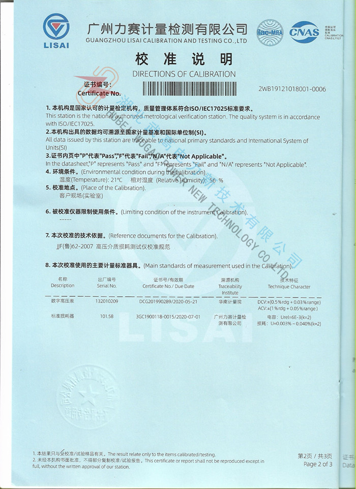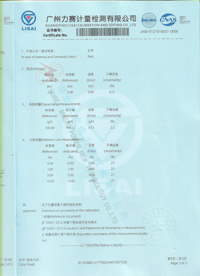 試驗頻率: 45、50、55、60、65Hz單頻