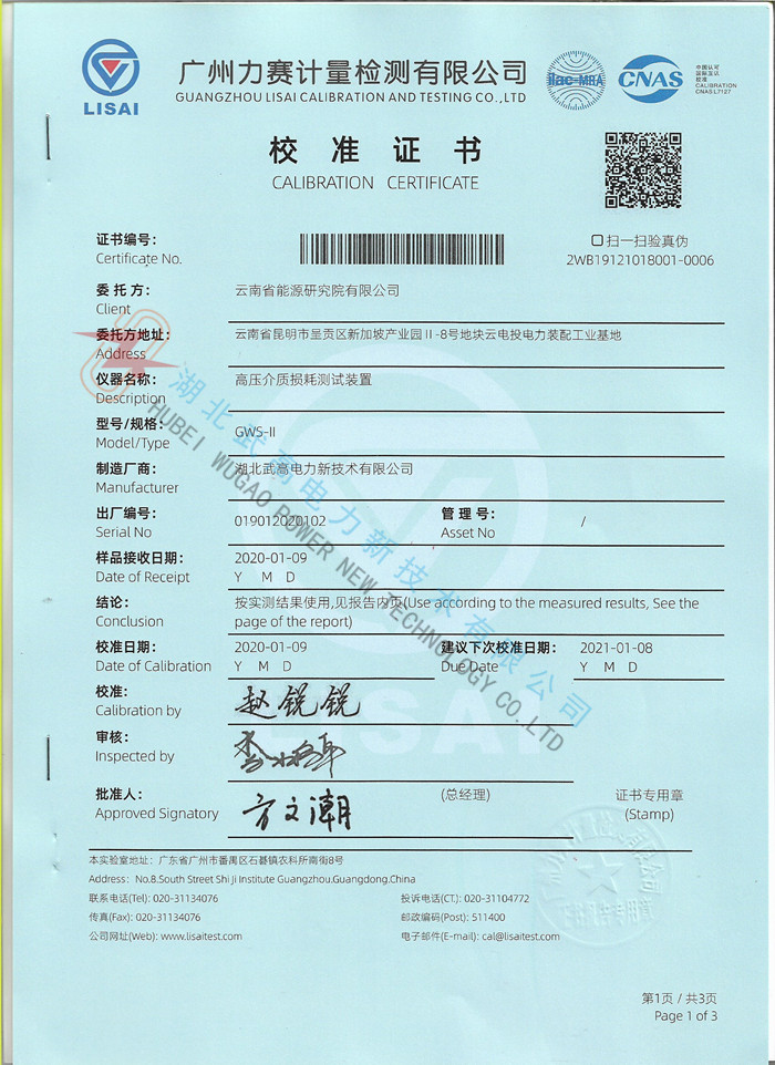 tgδ范圍: 不限,分辨率0.001%,電容、電感、電阻三種試品自動識別。
