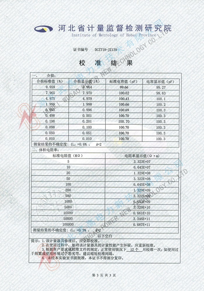 10、空電極杯校準功能。測量空電極杯的電容量和介質(zhì)損耗因數(shù),以判斷空電極杯的清洗和裝配狀況。校準數(shù)據(jù)自動保存,以利于相對電容率和直流電阻率的精確計算。