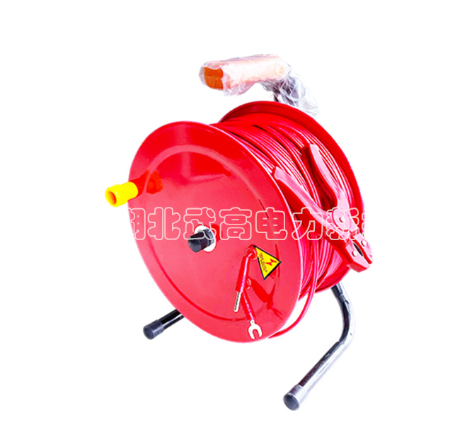 儀器附帶兩根測(cè)試線,一根紅色50米的線在線盤上,在大的叉子接在紅色接線柱I+,小的叉子接在紅色接線柱U+,一根黑色5米的線上大的叉子接在黑色接線柱I-,小的叉子接在黑色接線柱U-。