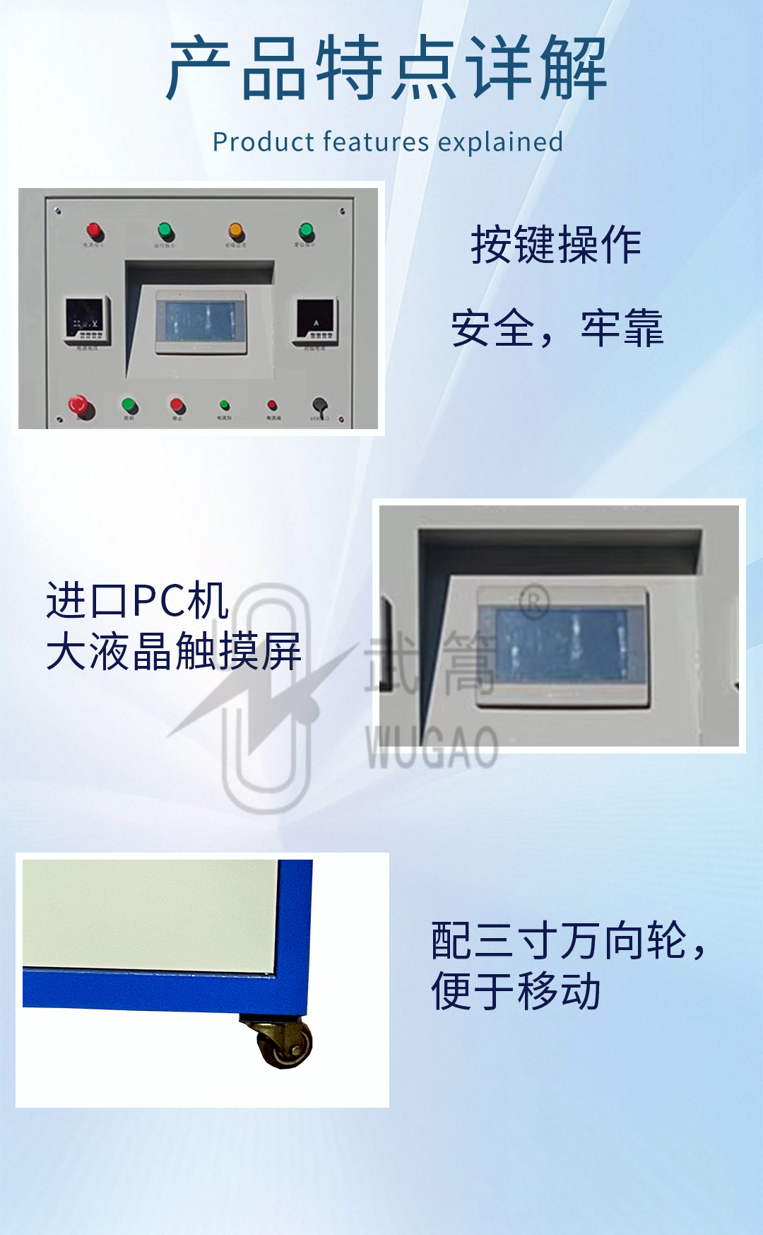 3)本儀器測試方法有全自動測試與手動測試兩種方法,只需設置簡單的試驗電流與時間即可。帶有自動穩(wěn)流系統(tǒng)。